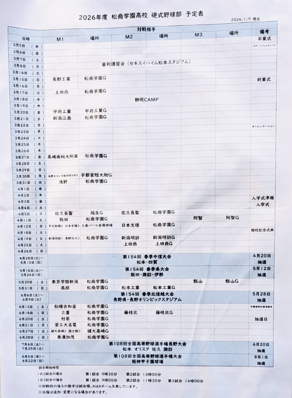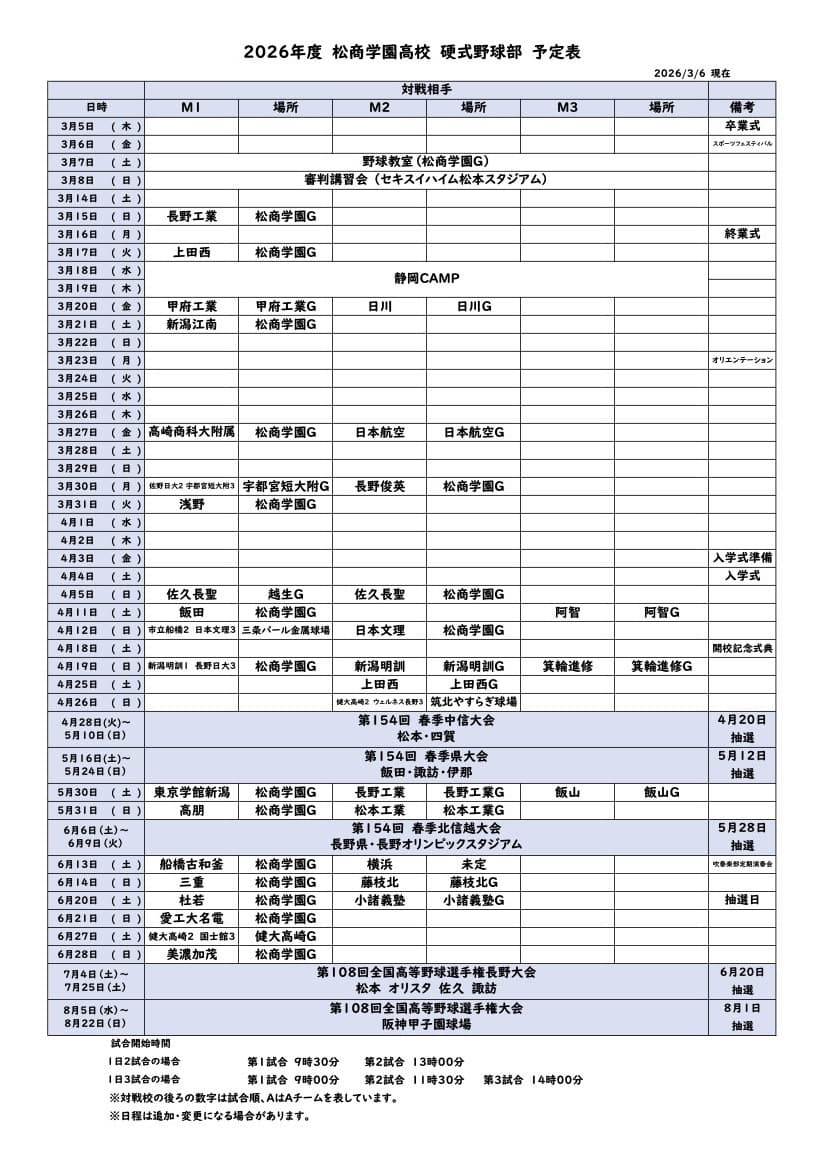 松商野球部OB会からのお知らせ