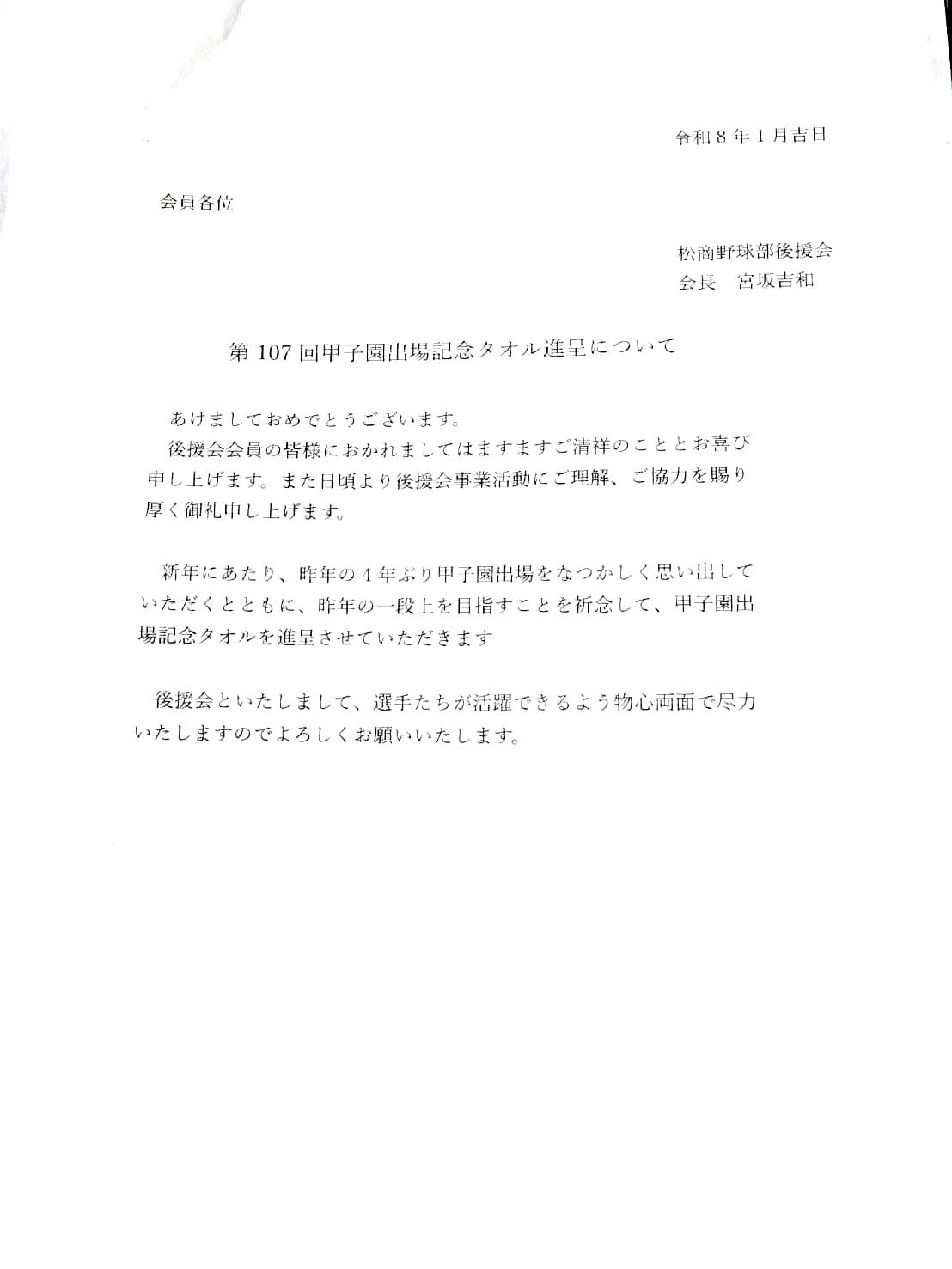 松商野球部後援会からのお知らせ
