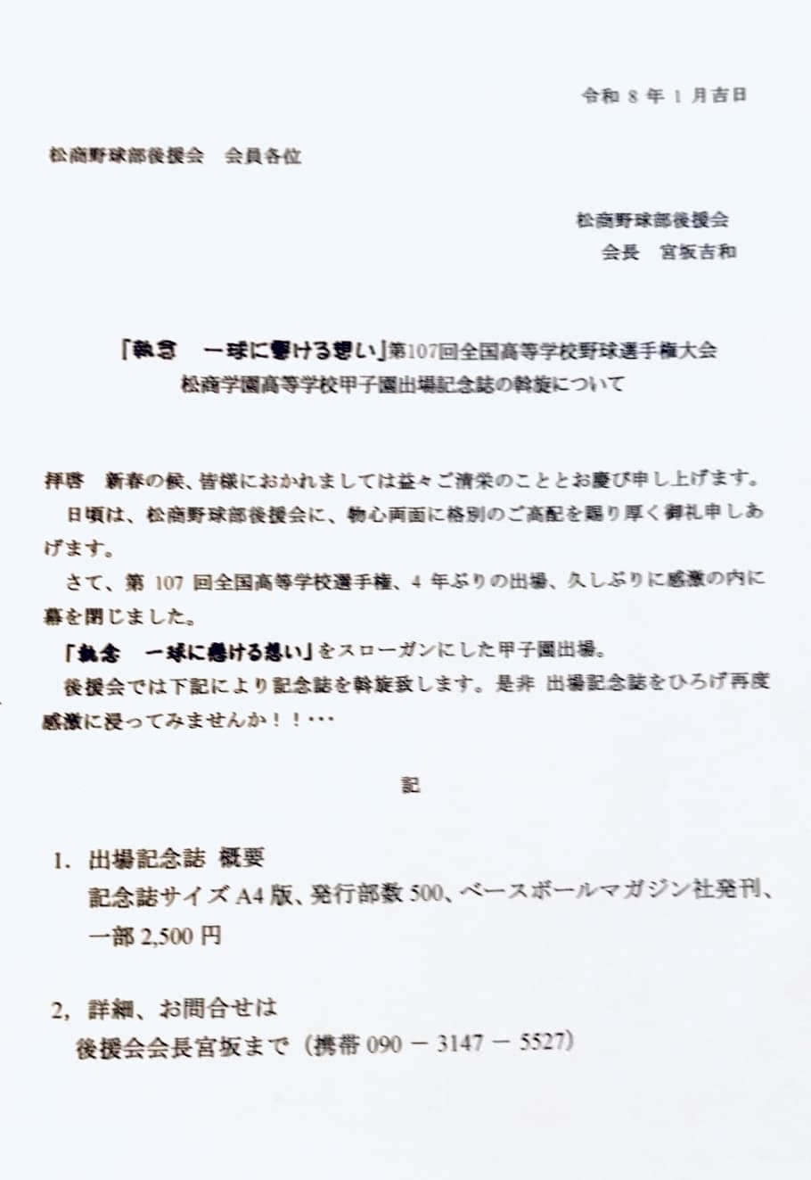 会員の皆さんが増え野球部への後援が今まで以上に出来るべくお力添え頂きます様よろしくお願い致します。