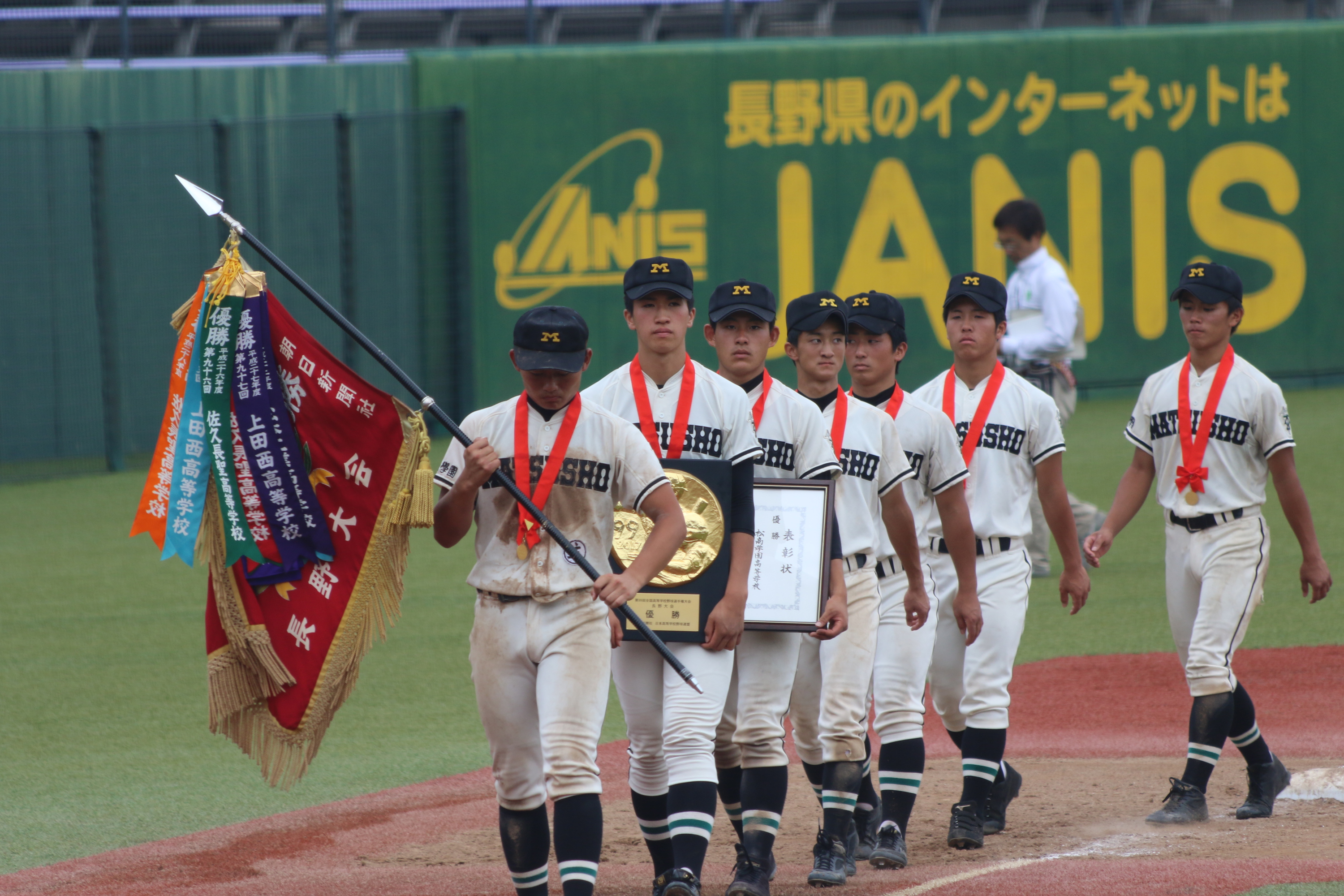 平成二十九年8月、第99回全国高校野球選手権大会に9年ぶり36回目の出場。土浦日大に12-3で久しぶりの快勝。17年ぶりの甲子園勝利にわいた。
