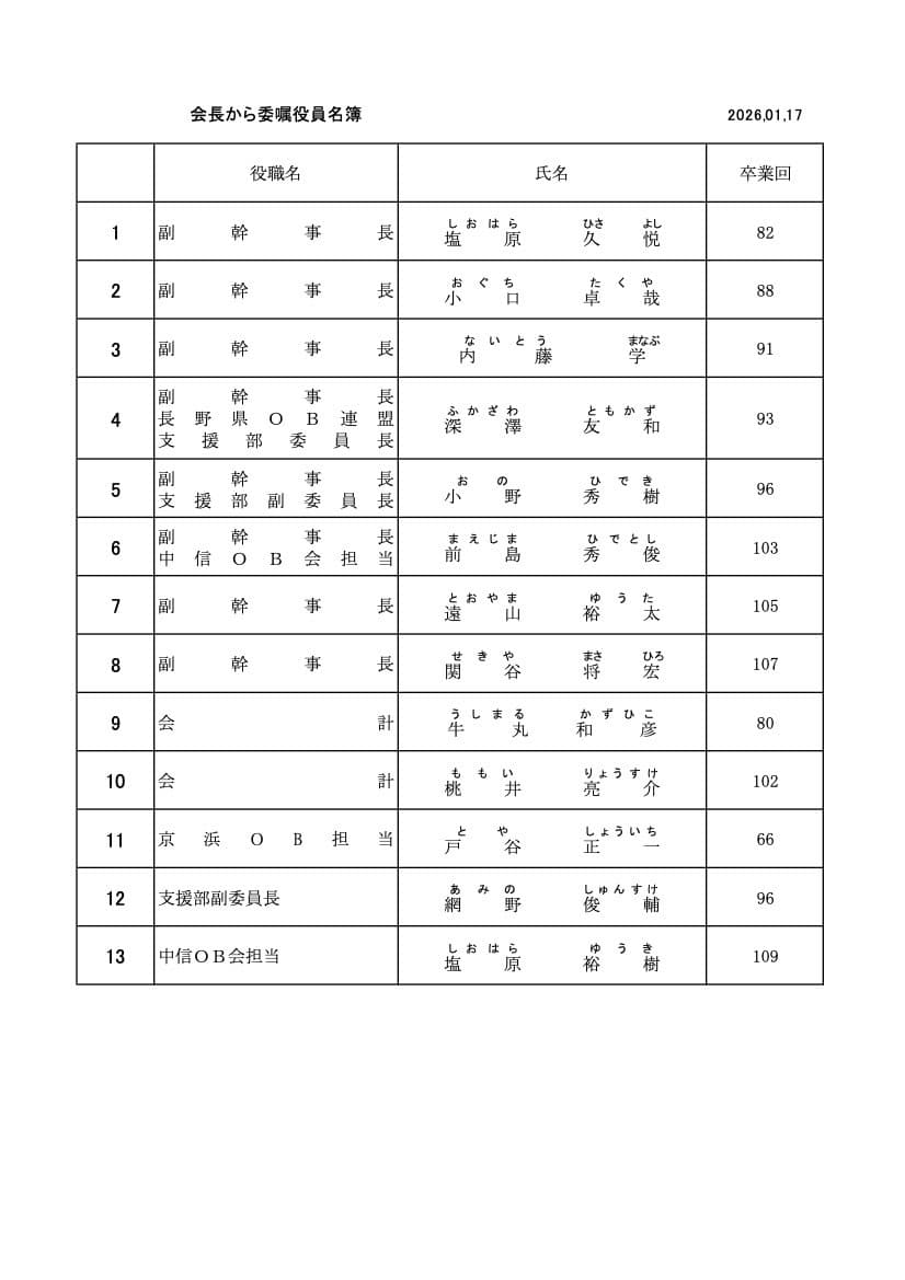 会長委嘱の役員は次のとおりです。
